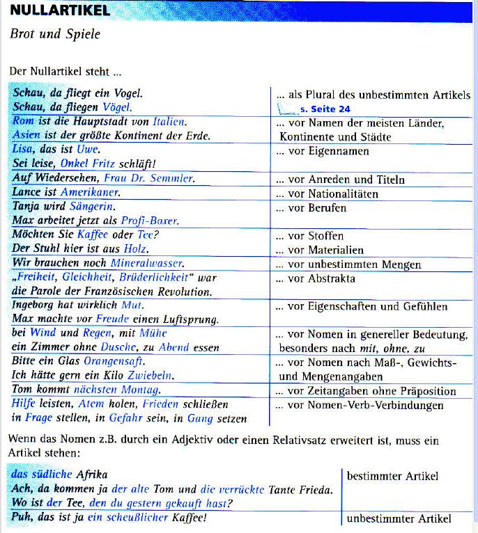 <--------------- скан с EM Übungsgrammatik на тему отсутствия артикля перед существительным.