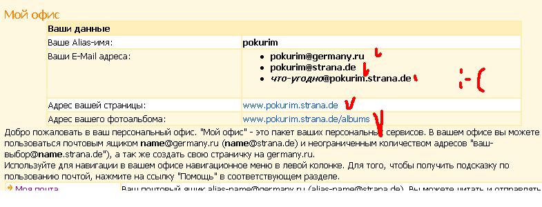 Я тебе больше скажу. Оказывается (!) по мэйлу pokurim@germany.ru можно ЛЕГКО выявить твой ник на германи.ру! Представляешь? Даже если бы твой ник был в кириллице (например "покурим", а алиас был бы "pokurim"), личные сообщения можно отправлять на твой алиас (pokurim) и они тоже будут получены.