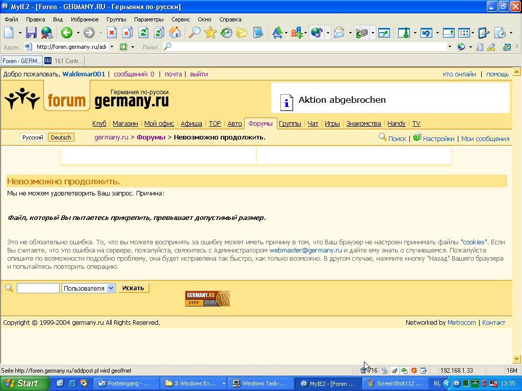 Сейчас, набрал текст--- прикрепил файл больше 200Кб----сообщение об ошибке----Назад----- Сообщение, что страница недоступна-----Ещё раз Назад-----Пустое окно.