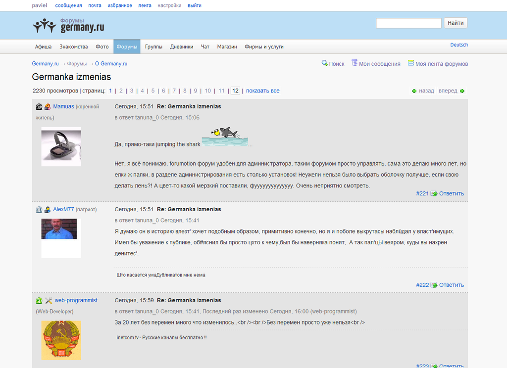 Про "радовало" - Вы серьезно?! У меня каждый раз сердце кровью обливалось, когда приходила на германку, но терпела - ведь форум - это общение, а уж функционал/дизайн как-нибудь пережить можно.