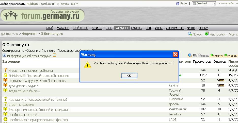 Zeitüberschreitung beim Verbindungsaufbau zu oasis.germany.ru