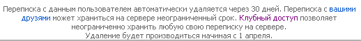 Вам оставалось всего лишь включить желаемых пользователь в список своих друзей, а здесь http://my.germany.ru/cgi-bin/my/options.cgi выставить "сохранять переписку с друзьями, остальную автоматически удалять через 30 дней"