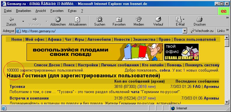 прим. 7.03.03 будет зарегистрирован 100000 ЮЗЕР