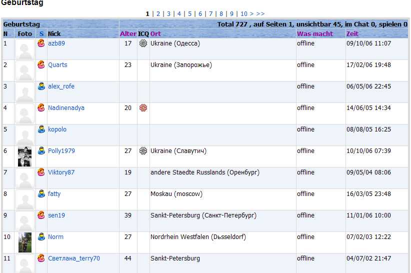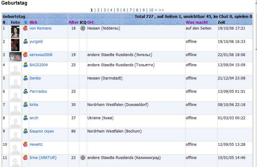 Letzter Beitrag (in der Gruppe; ggf. Kombination mit letztem/r Login/Aktivität bei germany.ru)