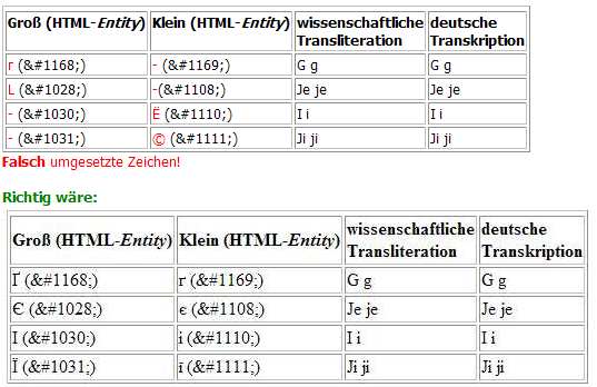 Folg. "Tabelle" habe ich kopiert von http://de.wikipedia.org/wiki/Kyrillisch#Zeichenkodierung und das kommt dabei heraus (abgesehen vom Layout, was ja so nicht übernomen wird.)