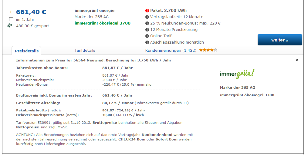 voraussichtlichen Jahresverbrauchs. Zusatzlich gilt fur Pakettarife, dass die Berechnung des Bonus mindestens auf Grundlage des bei Vertragsschluss gultigen Paketpreises erfolgt.