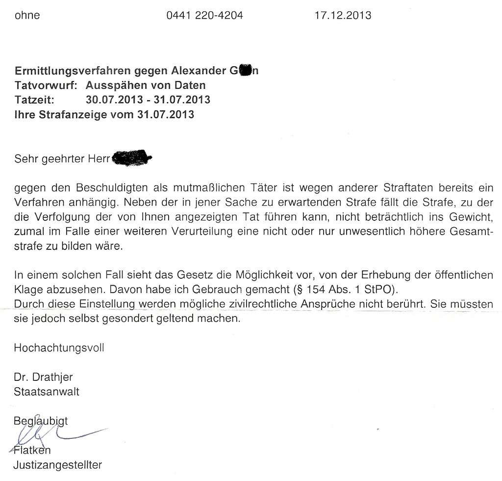 Там сказали : Окей , но только сходите в полицию и сделайте анцайге .