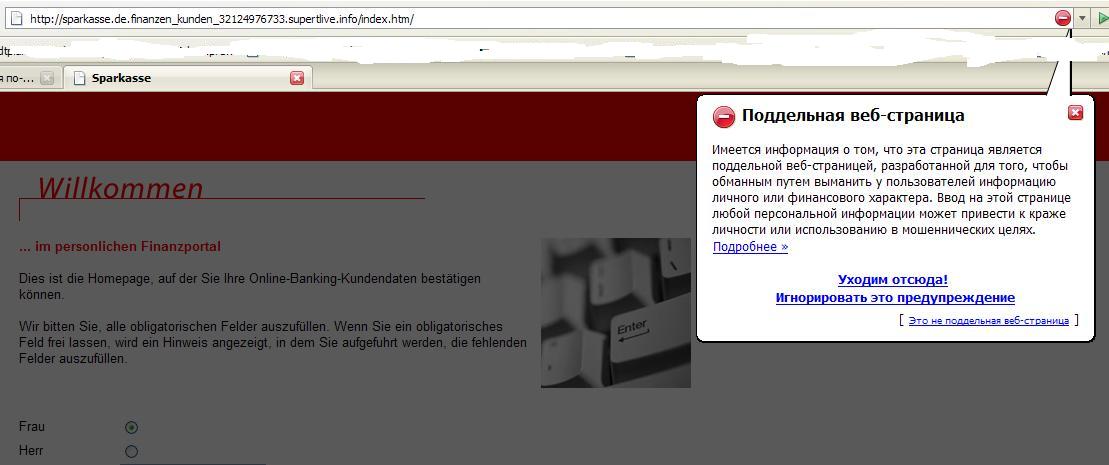 Сегодня увидел в своей почтовой программе письмо со ссылкой вот на этот сайт: _http://sparkasse.de.finanzen_kunden_32124976733.supertlive.info/index.htm/ , где просили заполнить свой PIN, BLZ, действующие TANы и т.д. Ну, думаю, надо жене показать, что есть такие дураки, которые это дело заполняют, а у них потом деньги со счетов воруют. Зову жену, а она мне говорит, что сегодня уже заполнила и отправила. Я, честно говоря, чуть со стула не упал. Залез в свою конту - вроде все на месте. Сменил пароль и, на всякий случай, заблокировал конту. Правда, не знал как это делается, поэтому просто несколько раз набирал неправильный пароль, пока не написали, что конту может теперь только мой бератор разблокировать. Собственно вопрос: не поздно ли я спохватился и что мне теперь делать? Ведь