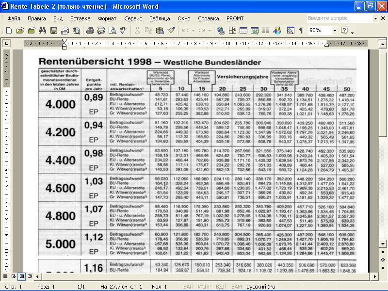 Судя по вашей уже пенсии 150, вы в месяц больше 3000 Euro зарабатываете? В прикреплённом файле таблица в марках на 98 год. Я думаю вы сможете её в Euro конвертировать. Расчёт самый большой не влез, при зарплате 5400 марок пенсия за 5 лет состовляет 289,19 марок. А бумажку прикрепить сможете, я очень сомневаюсь про 150 за 5 лет. Я вот точно могу прилепить бумагу сколько мне начислили за 25 лет российского стажа, это всего 260 Euro (в этих пределах).