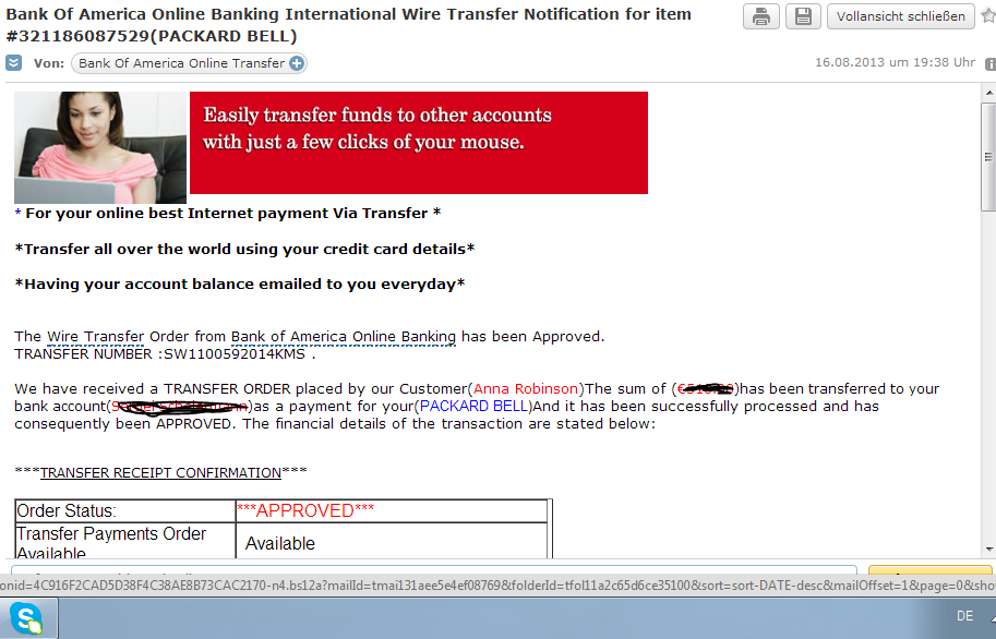 Ebay и оплата через Bank of America