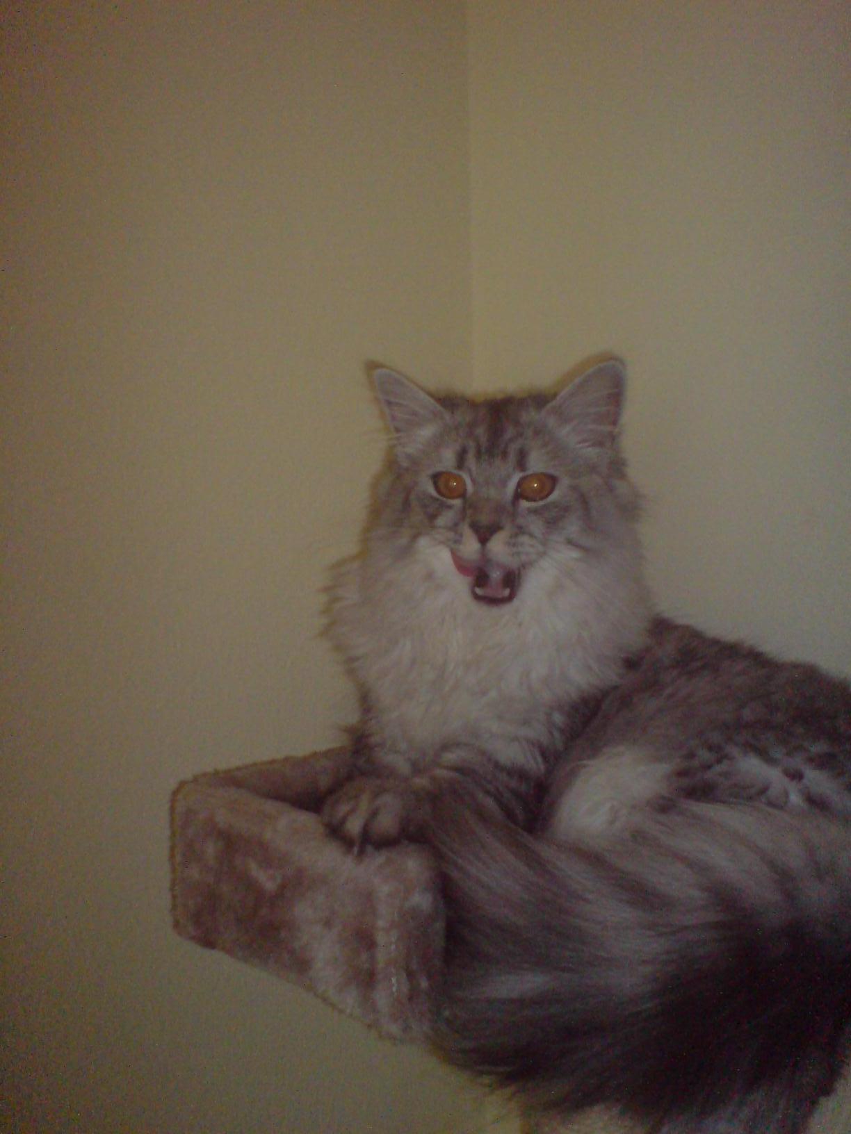 И коротко о котейке : 6 месяцев,вес около 5 кг,умён не погодам....вернее не по кошачьи)) умеем открывать любые ящики,есть замашки на дверь...очень разговорчив и ласков (ко мне)