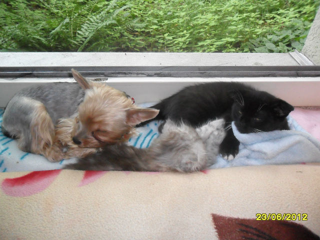 а вот наш зверинец,йорка,котик смесь майнкуна и скотишфолда,и девочка персик