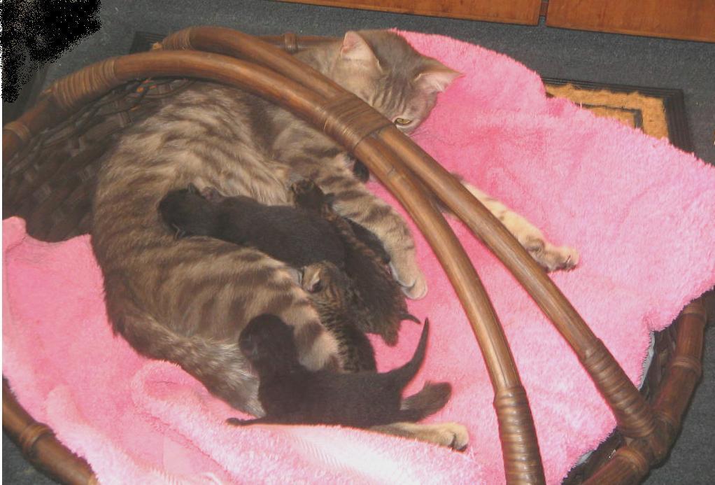 А котят ты не убираешь в тёмное место? Я вот боюсь что ослепнут.. Корзина классная, удобная для неё. Моя не захотела так лежать, носила их обратно в закрытую родилку..