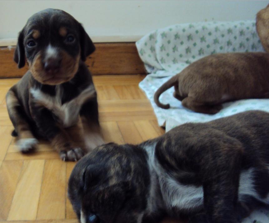Сегодня им 21 день. Прямо стадо какое-то. Носятся, гавкают!! Мать постепенно устраняется от их кормежки. Тяжело ей конечно пришлось.