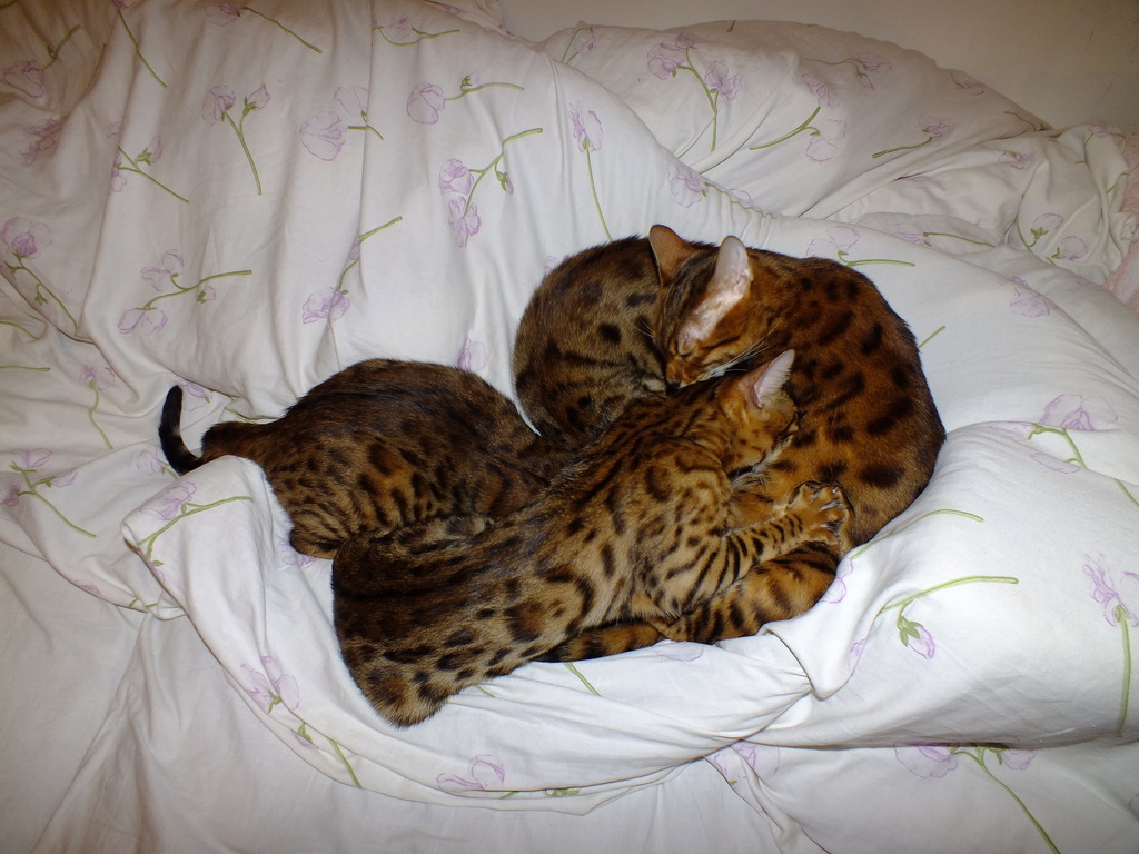 Бенгалы также любят свернуться калачиком с вами ночью в постели, и многие из них любят говорить. Некоторые кошки могут иметь полный контакт с вами, как будто они понимают каждое ваше слово.