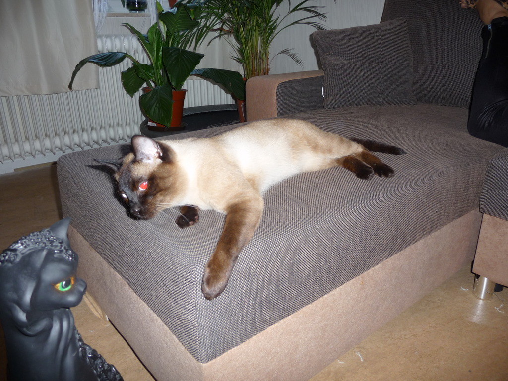 Зачастую под сиамской породой понимают только специфический вот такой окрас, сил-, блу-, ред-пойнт. Но наличие этого окраса не делает её сиамской. У настоящего сиама уши, голова и тело совершенно другие, чем на фото.