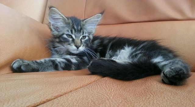 Здравствуйте! Вчера привезли нам малыша МК. Наша полуторагодовалая кошка Алиса все время на него шипит и рычит как собака. Я от нее такого не ожидала. Она такая тихоня и вот тебе на..... А он такой ласковый и игривый. Нас принял сразу за своих, обнимается, целуется. Такого я еще не видела, обычно у меня всегда британцы и они дня три обживались, некоторые сидели под кроватью и выползали по делам, некоторые убегали и в руки не давались, а тут сразу любовь. Правду пишут что мэйн куны ласковые. Ночью руку лапками обнимает, в нос тычется, урчит как трактор. А вечером с нами в кресле и на нас, что меня порадовало. Я такого и хотела котика ручного и доброго. Был момент вчера, лежит у