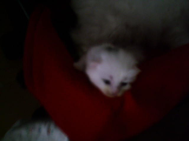 Вот еще наш котенок. Вчера у него открылись глазки.