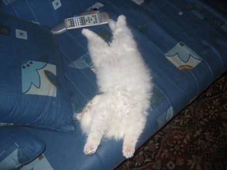 ето мой кот Жулик, бандюга и террорист. Надоумил же меня Господь 8 лет назад назвать так сво╦ сокровище, ведь не даром говорят, как вы лодку назов╦те, так она и поплыв╦т. Ента "скотинка" держит в страхе всех соседей и их собак, про котов уж и не говорю, а для меня он самый, самый любимый, хоть и беспоподный.