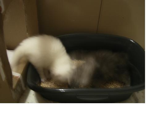 скажи, а как вы их к горшку приучили? наши такого-же возраста, но еще не ходят в туалет. кошка их всё время сама вылизывает. а когда котята начинают в туалет ходить? или вы их уже кошачьим кормом кормите?