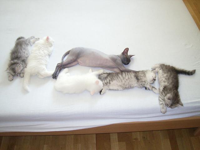 26 мая у нас родились котятки. 2 белых мальчика и 3 дымные девочки . К концу лета будут готовы переехать к новым хозяевам уже проглистагоненными и привитыми. Все вопросы в личку или по тел. 0721/94549444