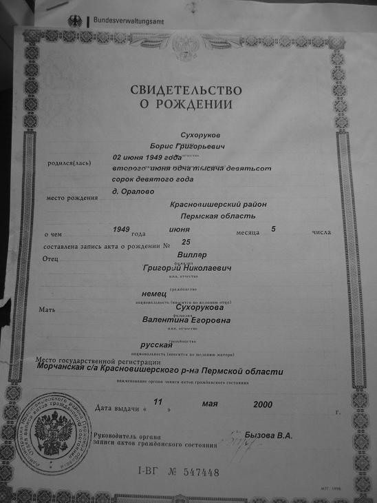если отец у него "появился" так поздно, то вероятно Ваш отец никак не мог быть немцем по первому паспорту (бабка ведь немкой не была). с этой точки зрения сомнения BVA можно понять...