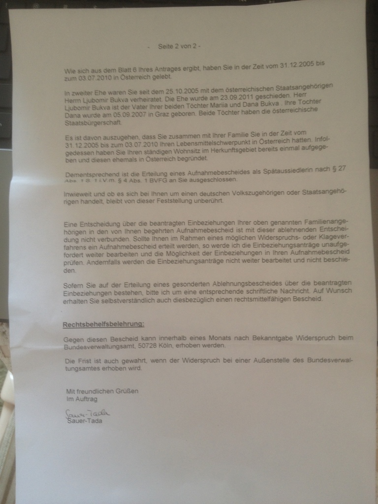 Мол, не согласна с отказом. Во время моего пребывания в Австрии habe ich meinen Wohnsitz in der Ukraine nicht aufgegeben.