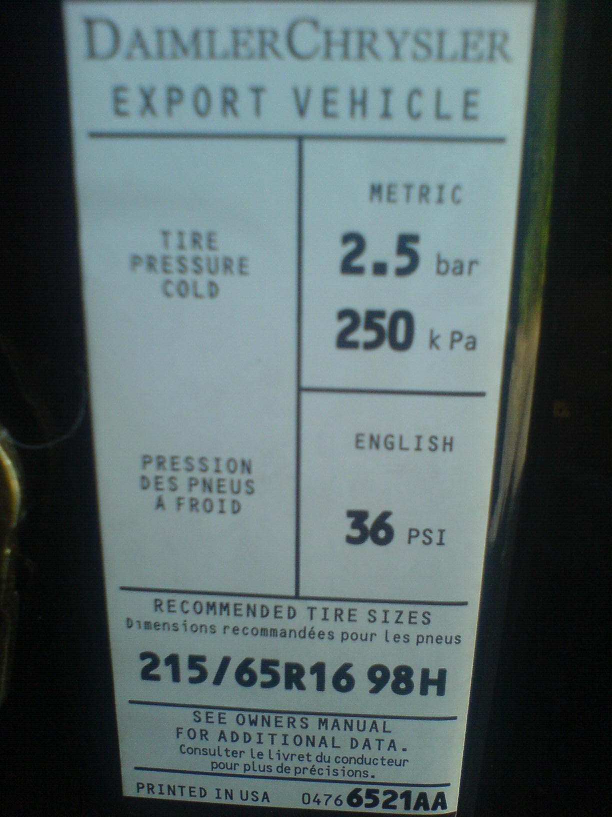 195/65 R15 - 2,1 bar;