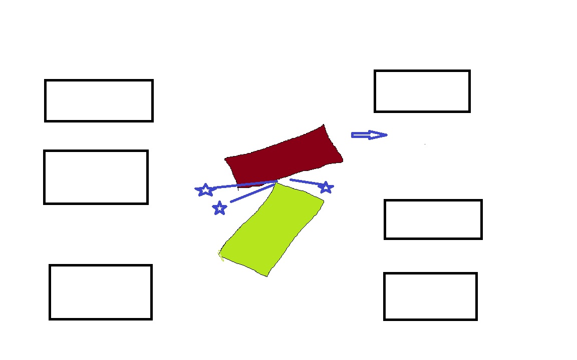 я бы сказал что красную машинку нужно правее разместить и развернуть градусов на 45