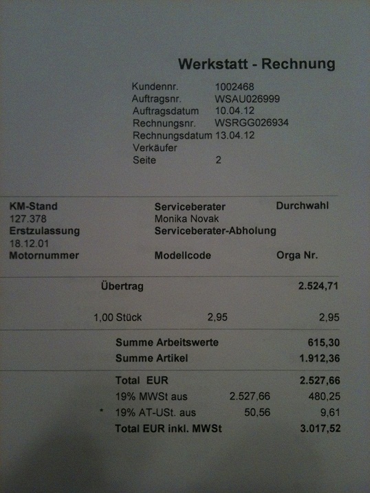 Итак ровно за четыре года владения в этот шрот вложено около пяти с половиной кило евро плюс сама стоимость машины 6750.....
