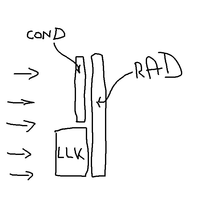 Климаконденсатор тонкий и стоит перед общим радиатором