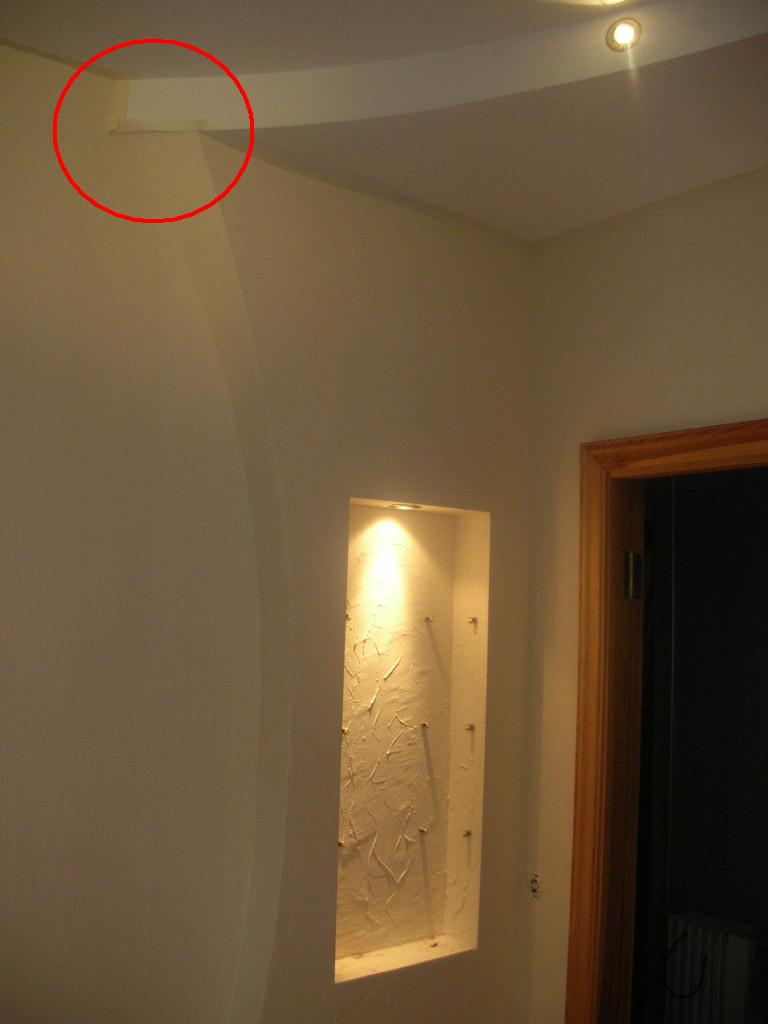 и если бы раньше волзникла мысль перейти с волны на стену,до окончания работ,то переход начал бы где-то за полтора метра,до стены...получилось бы красиво и стильно..а так идея пришла когда потолок был выведен....