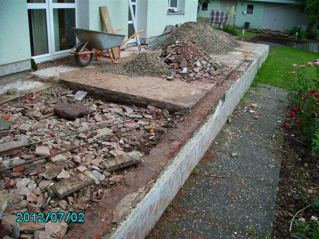 Взялся я за террасу. И вопрос у меня стал по бетонированию. Так как абсолютно не имею ни понятия, ни опыта как происходит этот род деятельности, и какие нюансы нужно учитывать, обратился за информацией в поиск всемирный паутине, как на русском, так и на немецком языках. Видеороликов предостаточно, но вот пошагово объясняющих что и как - очень немного. И вот что я "нарыл":