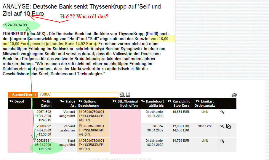 А разве дивиденты тебя не интересуют? Сейчас перед выплатой все как бараны в эту акцию полезут. 26.05 Zahlen für Q1, а 30.06 Hauptversammlung. Вот и продал бы ее к этому термину. Я спекулирую на то, что курс ее подымется до июня до 15-16 евро, а может и выше.