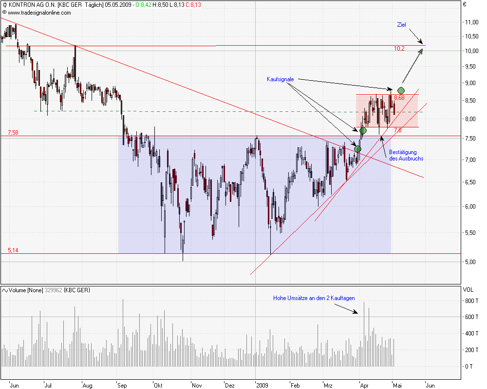 21.04 минимум был 7,61 , 27.04 минимум был уже 7,76, то есть выше чем предыдущий. 30.04 курс пробивает отметку 8,68, доходит до 8,80, но возвращается назад - Fehlausbruch.