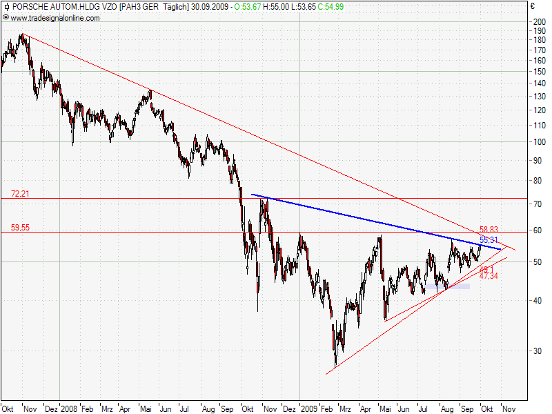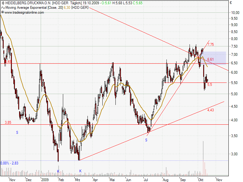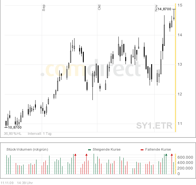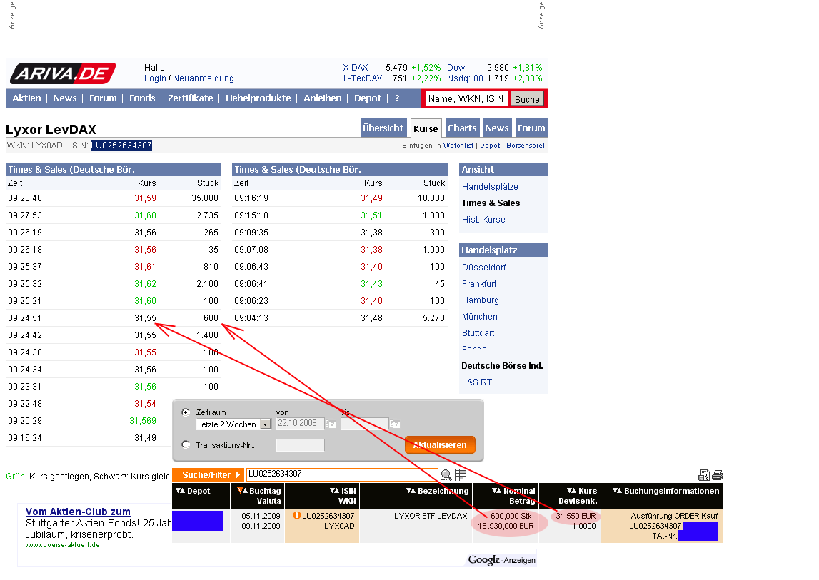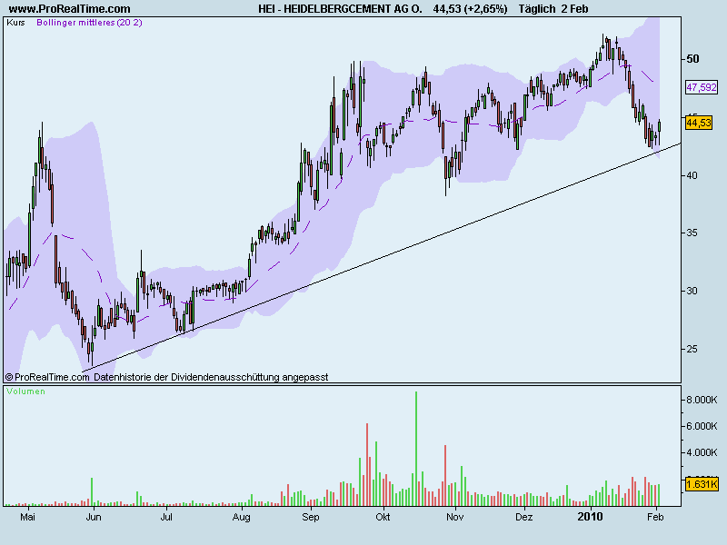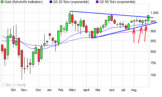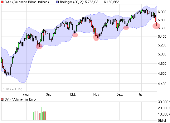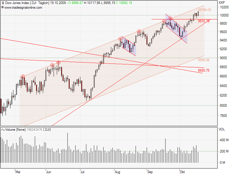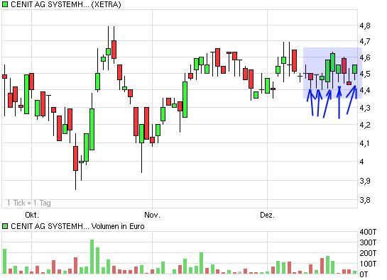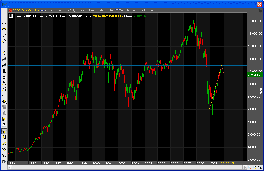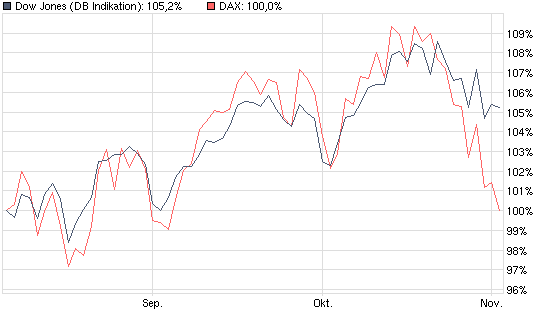 Dow болтается между 9600 и 9400. Bei 9600 wird er immer wieder ausverkauft. Bei 9400 kommt wieder Kaufinteresse rein. Это говорит о том, что спрос и предложение gleich.