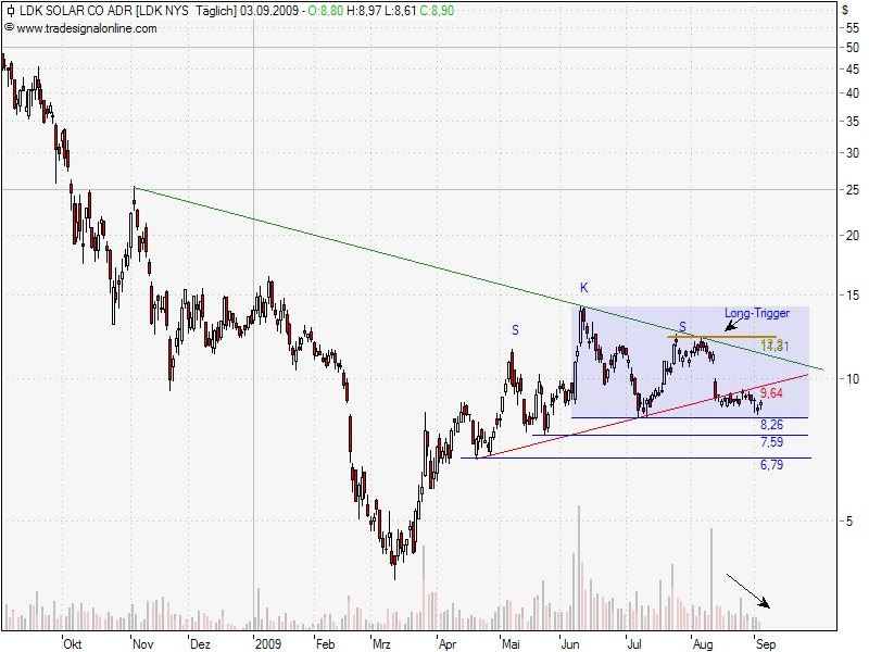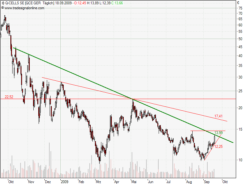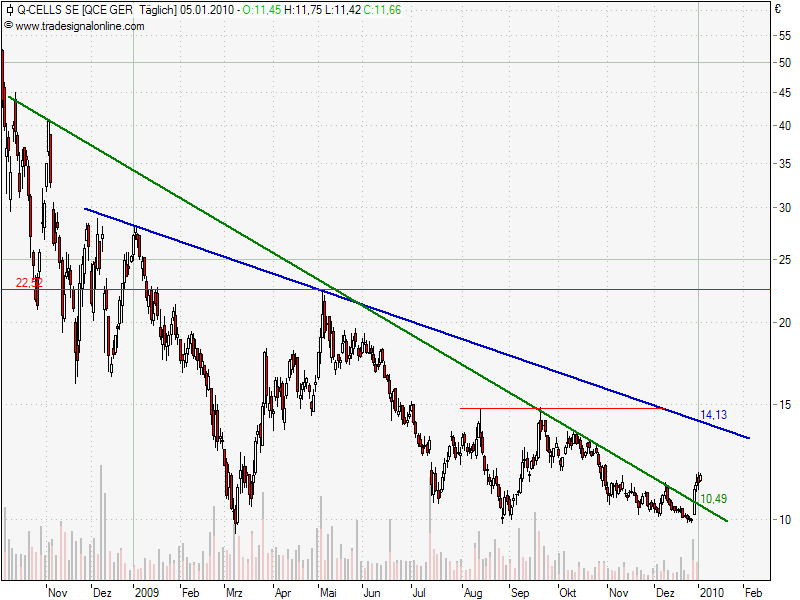 Вот на Q-Cells хорошо видно. Этой весной пошел курс наверх и казалось, что акция пошла на подъем. Однако в июле она не удержала свой уровень и опять завалилась.