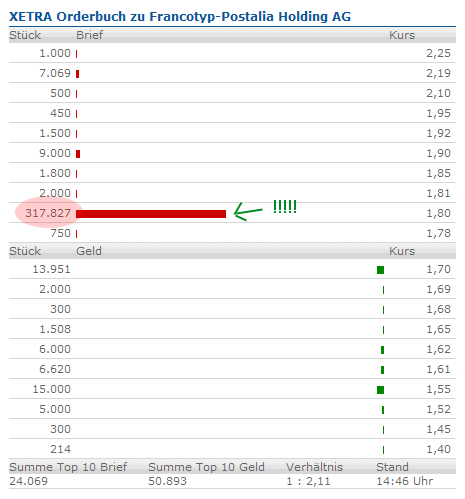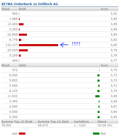 Очередной вопрос на тему Stop-Loss (избитая тема, но всё же). Кто сколько ставит? 5% - мало, 10% - вроде многовато. В принципе, из общих соображений ясно, что идеальный SL - чуть ниже одной большой партии акций, но выше большого количества мелких партий. В этом случае если рассосётся большая партия и курс быстро попрёт вниз, потери будут меньше... Отсюда вопрос: никто не подскажет, где можно просмотреть orderbuch, но не вблизи текущего курса (как скажем здесь - http://www.finanzen.net/orderbuch/HeidelbergCement), а на 6-10% ниже, куда хотелось бы поставить SL?