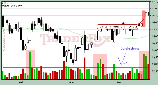 . Интересно, что большинство из них даже не понимает, что такое тренд. Мы уже 5 месяцев как находимся im Bullenmarkt. Тренды всегда протекает ступенями. Курсы в таком тренде при корректурах маркируют минимумы (Tiefs). При это каждый раз минимум актуальной корректуры должен находиться выше предыдущей. На картинке я пометил такие минимумы зелеными. Такие пики вниз бросаются сразу в глаза. Правило гласит: solange steigende Tiefs produziert werden, ist man im Bullenmarkt und der Trend geht nach oben. Падают курсы ниже предыдущего минимума, значит aufpassen, возможна