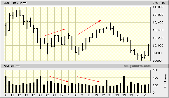 Лучше наблюдать за оборотами торговли. Если с ростом курсов обороты торговли с каждым днем все меньше и меньше становятся, значит вниз скоро.