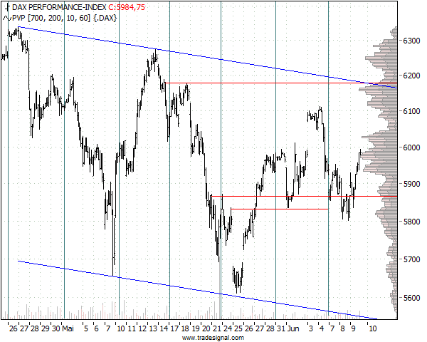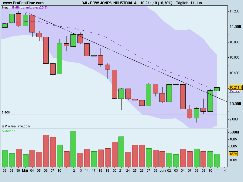 Ich bin seit dem vorletzten Freitag bärisch eingestellt. Zwar werden momentan Abwärtskanäle nach oben gebrochen, eine wichtige Voraussetzung wird aber dabei nicht erfüllt: das Handelsvolumen ist relativ klein.