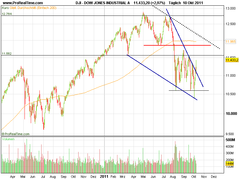 Даже в кризис 1929-1932-го были время от времени Bärenmarktрallyes в сторону 200 дневки. Дау вчера выскочил из треугольника, но обороты торговли были очень маленькие. Двухсотка у него проходит на данный момент где-то на 11900, однако уже до нее сильная зона сопротивления (11600-11800)