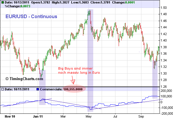 Zu Friede, Freude, Eierkuchen ist dennoch kein Anlass. Die Stimmung verrät viel über die zu erwartende Börsentendenz auf kurze bis mittlere Sicht, langfristig jedoch gewinnen die Fundamentaldaten die Überhand. Diesbezüglich hat sich jedoch nichts geändert. Es wird der Politik sicher gelingen die Probleme durch weitere Schulden auch ein weiteres Mal in die Zukunft zu verschieben, gelöst sind sie dadurch aber nicht. Im Gegenteil, sie werden nur immer größer. Die USA praktizieren diese Politik nun schon seit gut zehn Jahren. Wachsam bleiben ist daher das Credo und irgendwann auch wieder aussteigen. Wann, dass lässt sich im Voraus nicht bestimmen. Auf die zukünftige Stimmung kommt es an