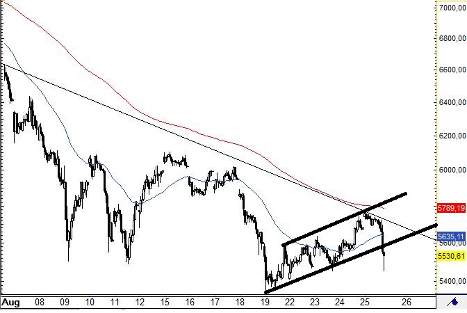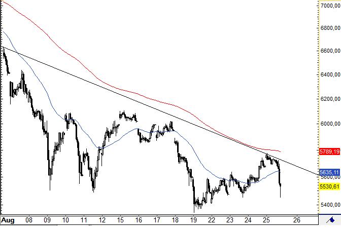 Der DAX verlor 1,7% oder 96,94 auf 5.584,14 Punkte. Vorübergehend stürzte er um 4% ins Minus bis auf 5.461 Punkte, ausgelöst laut Teilnehmern von Aussagen von Bundesfinanzminister Wolfgang Schäuble. Dieser hatte sich dafür ausgesprochen, eine schärfere Regulierung der Finanzmärkte notfalls zunächst im europäischen Alleingang voranzutreiben.