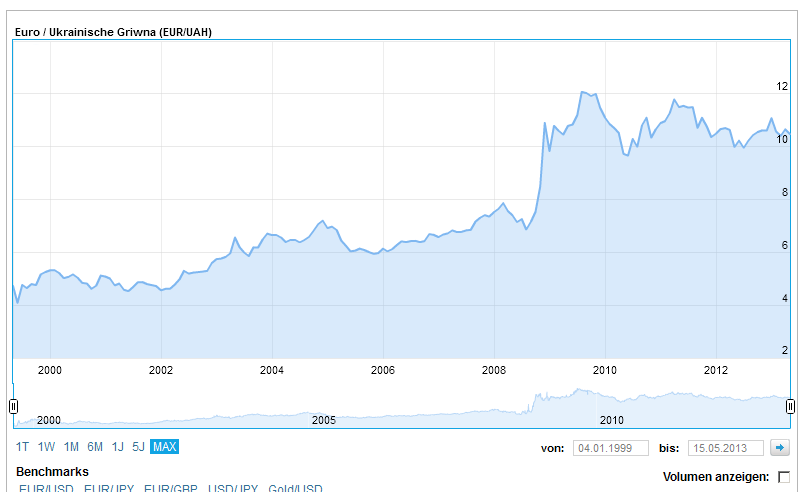 5 лет назад курс евро к гривне был 13. Последние 5 лет - стабильно держится в р-не 10.