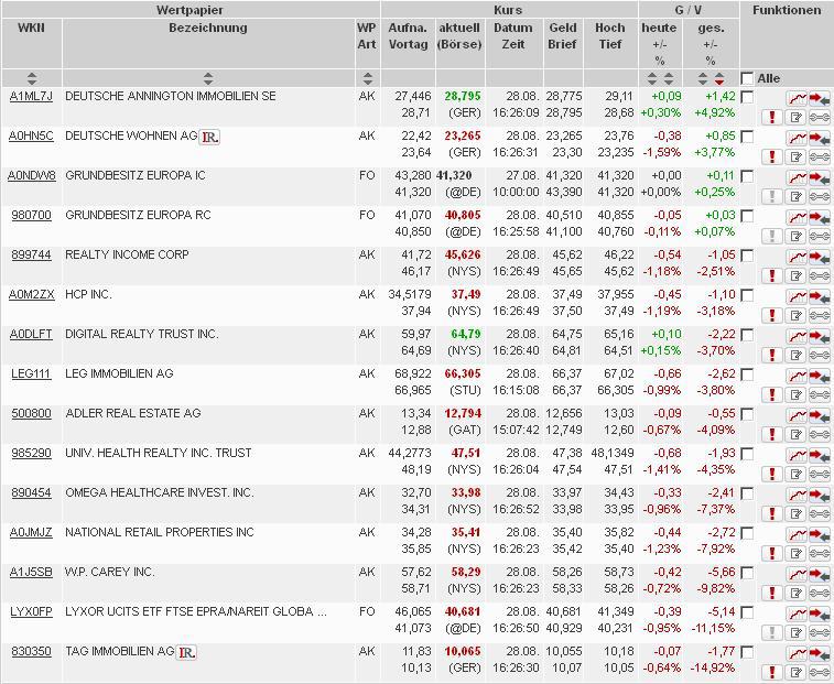 Например: DEUTSCHE ANNINGTON IMMOBILIEN SE, DEUTSCHE WOHNEN AG, LEG IMMOBILIEN AG, ADLER REAL ESTATE AG, TAG Immobilien AG