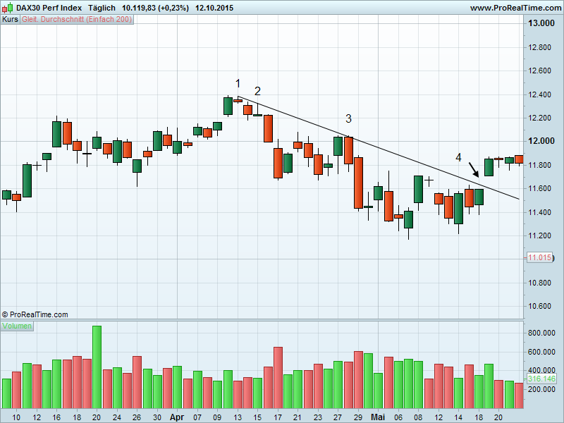 но мне непонятно, почему при достижении верхней границы падающего тренда он должен быть пробит.