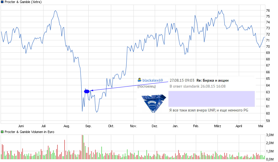 Procter & Gamble - хорошая, качественная акция, но в данный момент находится в боковухе.