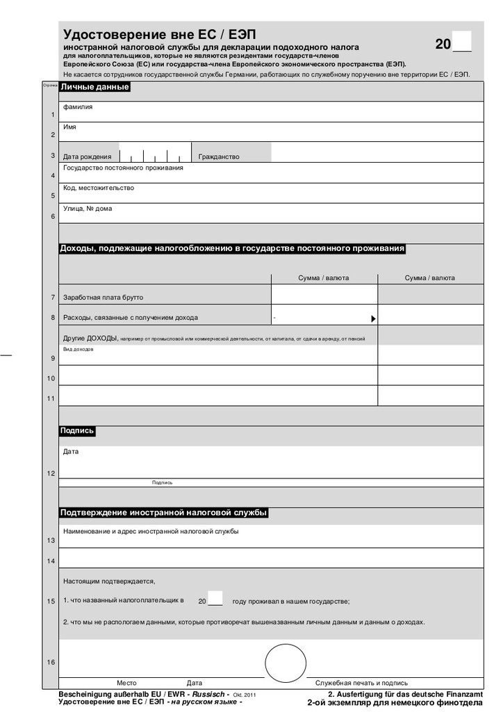 Бланк этого документа, который они просят прислать, к письму приложен - Удостоверение вне ЕС/ЕЭП иностранной налоговой службы для декларации подоходного налога для налогоплательщиков, которые не являются резидентами государств-членов Европейского Союза (ЕС) или Европейского экономического пространства (ЕЭП).