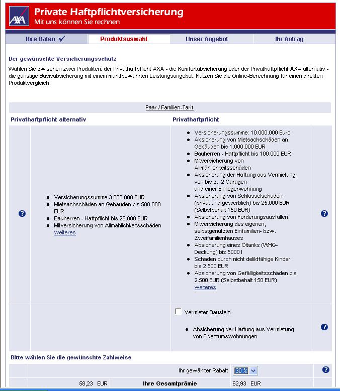на данный момент самые выгодные цены на Private Haftpflichtversicherung 33,90 Еуро Сингл и 48,70 семья на 3 мил. сумму страховки.